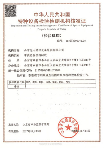 【特種設(shè)備檢驗(yàn)資質(zhì)和檢驗(yàn)范圍】 RD2 定期檢驗(yàn):第一、二、三類固定式壓力容器(不含超高壓容器,大型高壓者器、球形儲(chǔ)罐) RD3定期檢驗(yàn):第一、二類固定式壓力齊器(不含球形儲(chǔ)罐) DD2定期檢驗(yàn):公用管道 DD3定用檢:工業(yè)管道 QD2 定期檢驗(yàn):塔式起重機(jī)、流動(dòng)式起重機(jī),門座式起重機(jī),升降機(jī),纜索式起重機(jī)、梔桿式起重機(jī),額定起重量小于 10T(不含10T)的橋式起看機(jī)和門式起重機(jī) QD3定期檢驗(yàn):流動(dòng)式起重機(jī),塔式起重機(jī),升降機(jī) ND1定期檢驗(yàn):場(chǎng)(廠)內(nèi)專用機(jī)動(dòng)車輛 【...